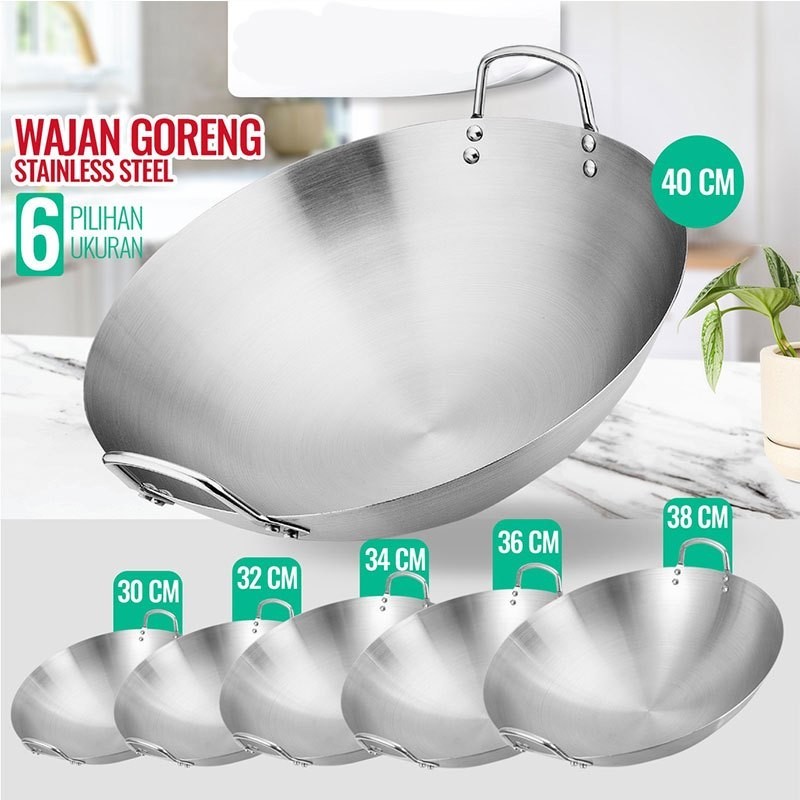 Nyaman Wajan Stainless Steel 555 Besar Katel Anti Lengket Tebal Kuali Premium dengan Pegangan Kuali