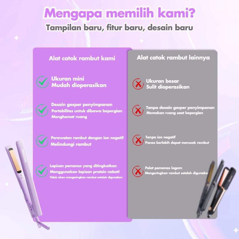 MANGOMAN Catokan Rambut 2 In 1 s Rambut Pengeriting 24 Jam Tahan Lama Pemanasan Cepat 4 Tingkat Suhu 160℃-220℃