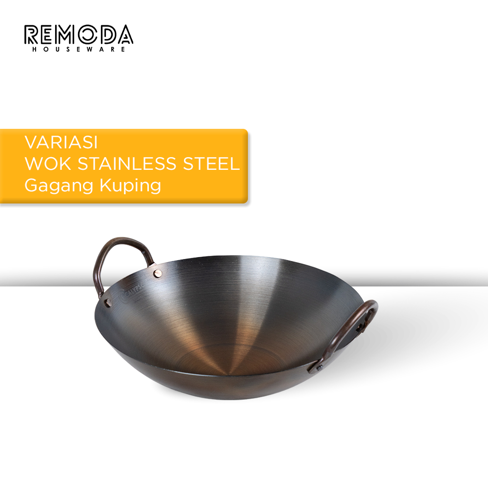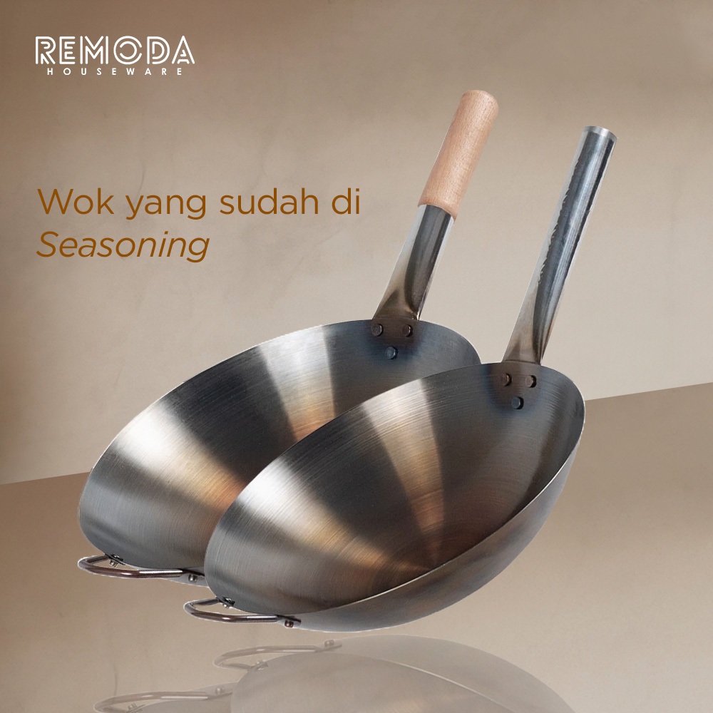 Calypso Onomane Wok Kuali Wajan Penggorengan Sudah Seasoning Anti Lengket 28-40cm Stainless Steel