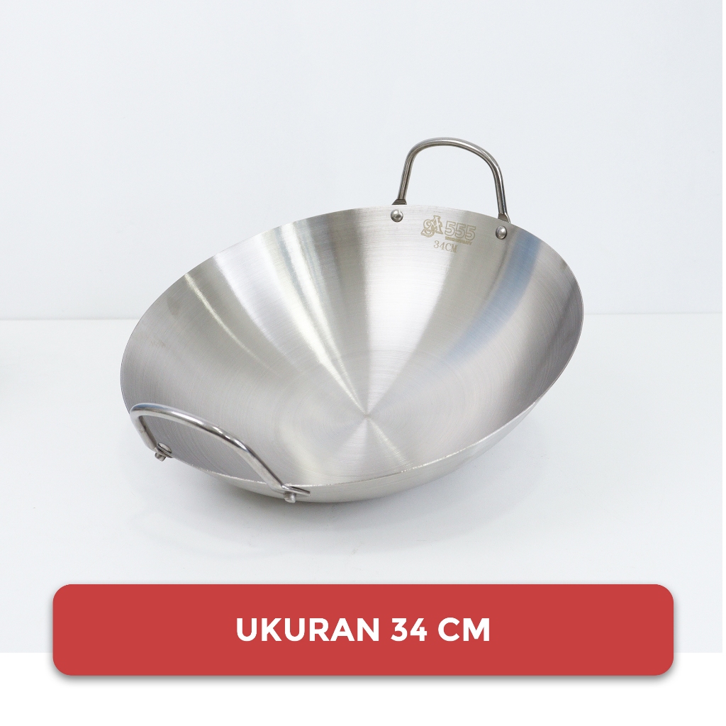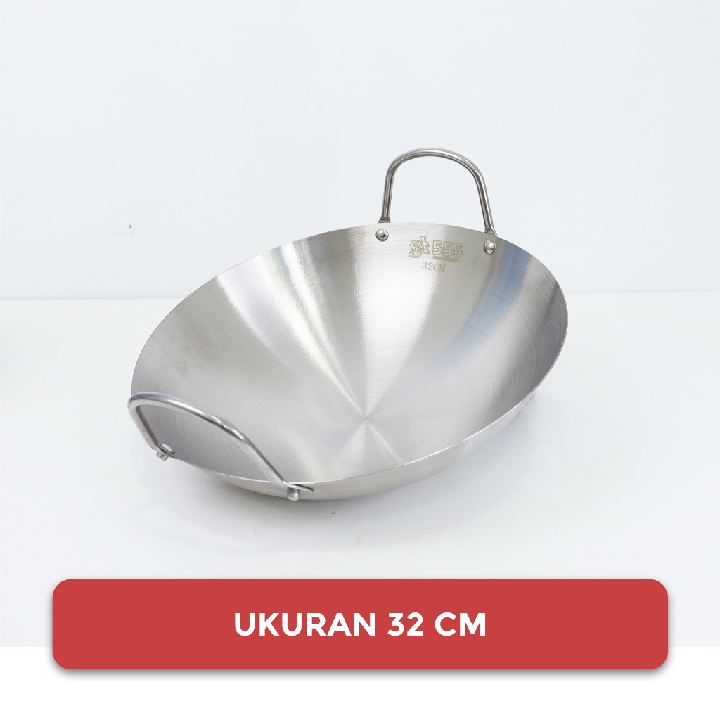Wajan Stainless Steel 555 32cm-36cm Wajan Kuali Penggorengan Anti Lengket Anti Karat Free Spatula