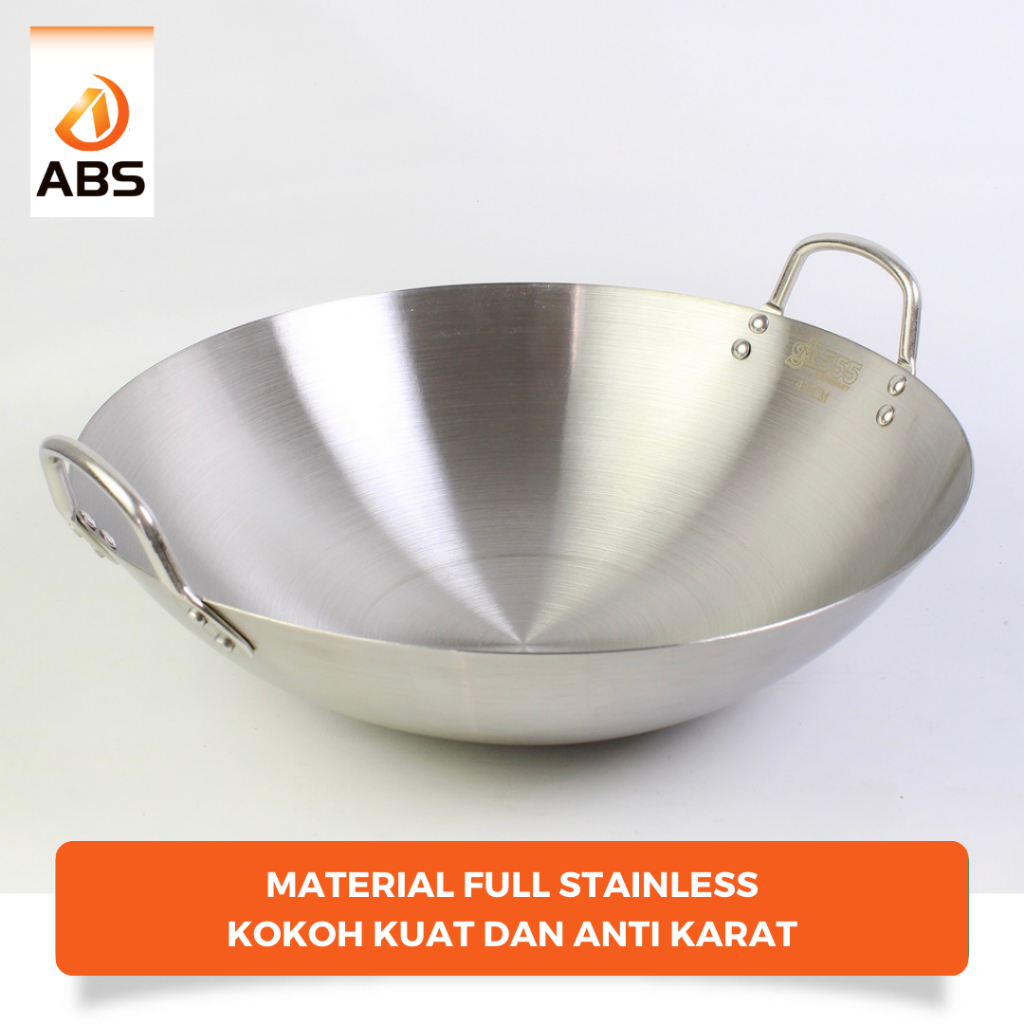 ABS [] Wajan Stainless 555 Tebal Kuali Premium dengan Pegangan Stainless Steel Kuali Besar Katel Anti Lengket