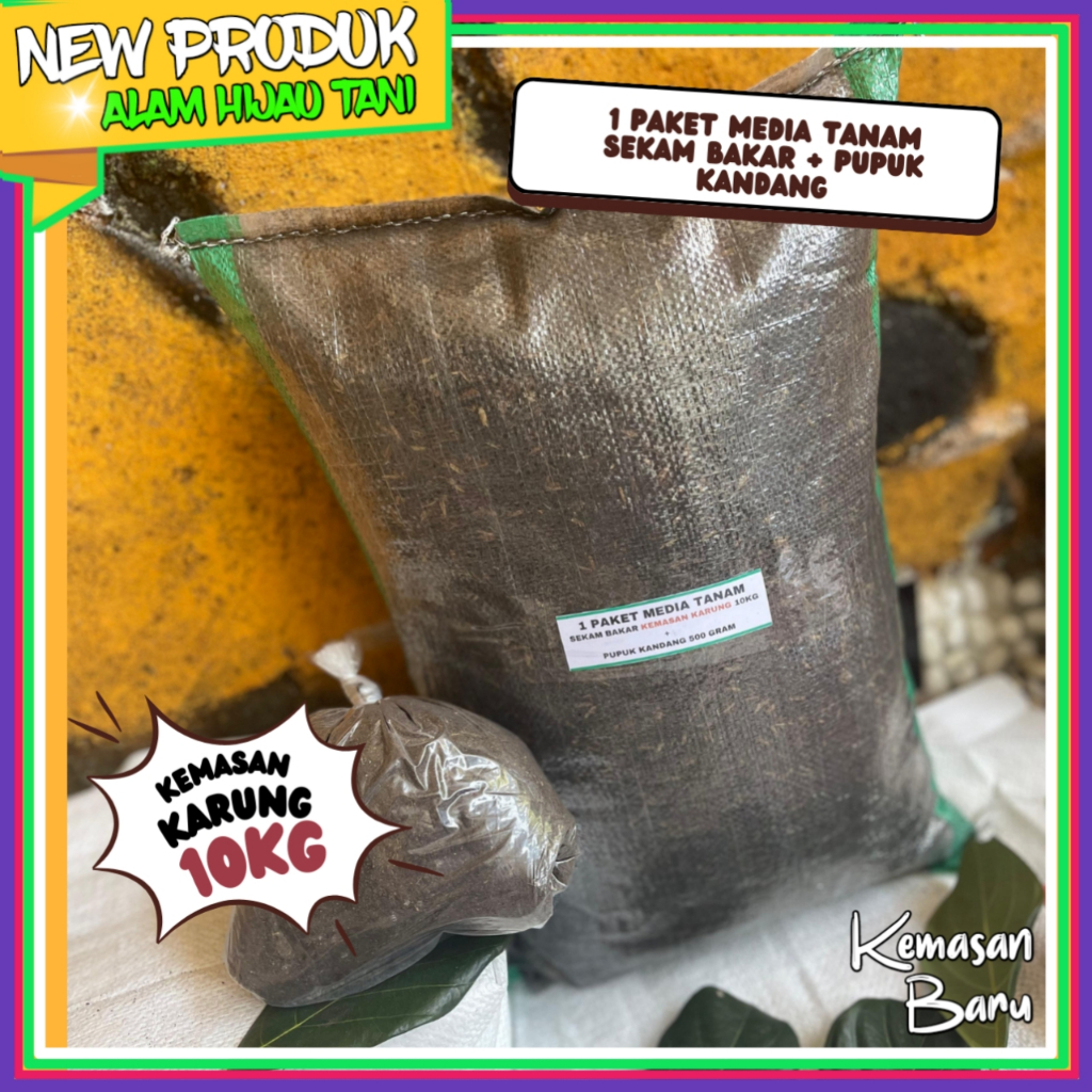 AHT - 1 Paket Media Tanam Sekam Bakar Ukuran 10 + Pupuk Kandang 500 Gram