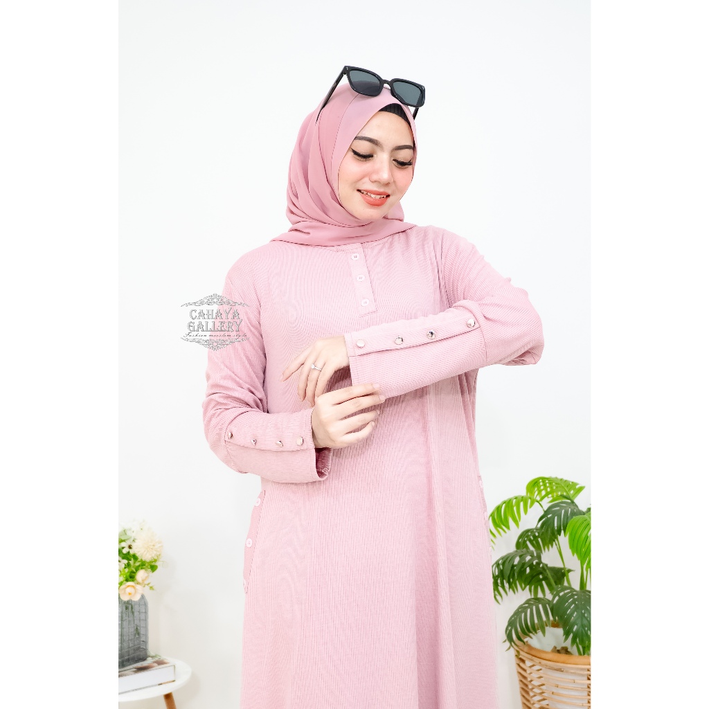 Keyra Dress Batwing Button Knit Premium - Gamis Casual Simpel Panjang Muslim Sporty Busui