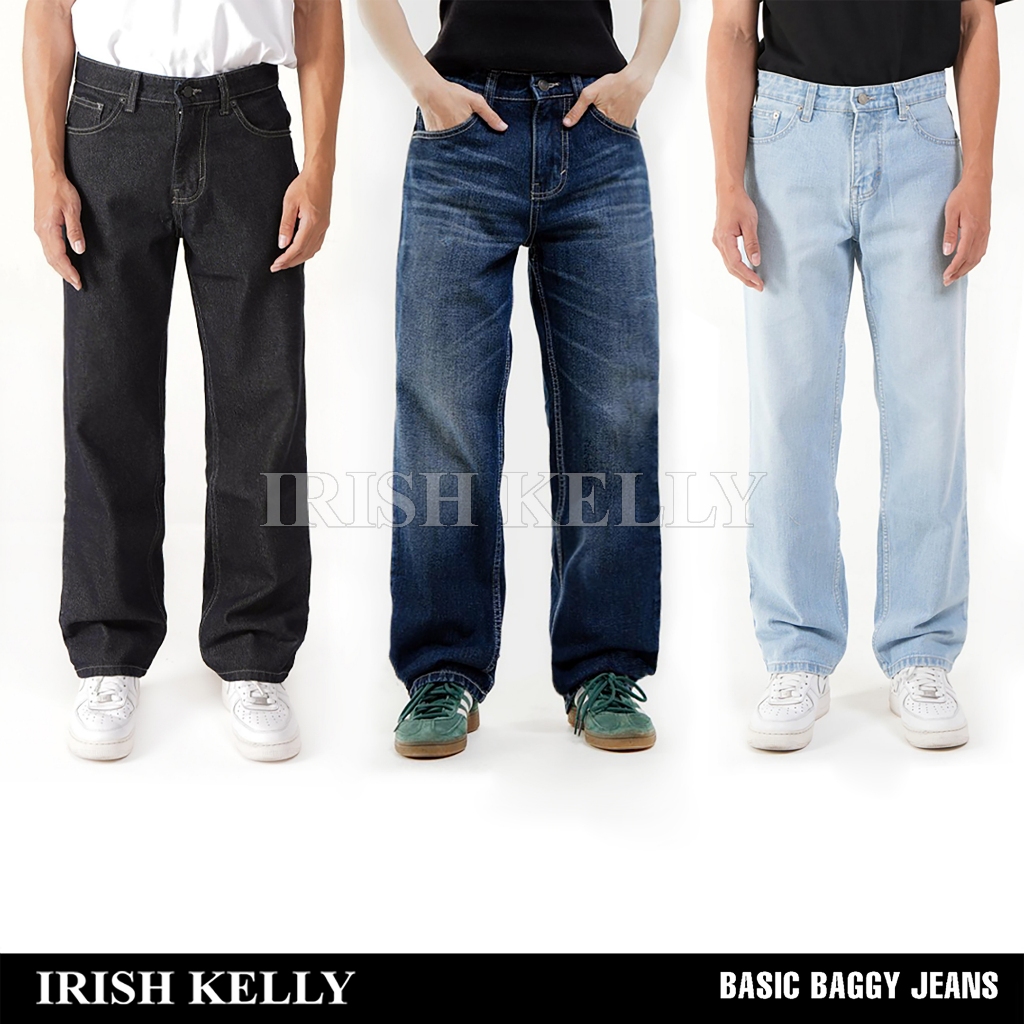 IRISH KELLY Basic Baggy Blue Jeans Long Pants Denim