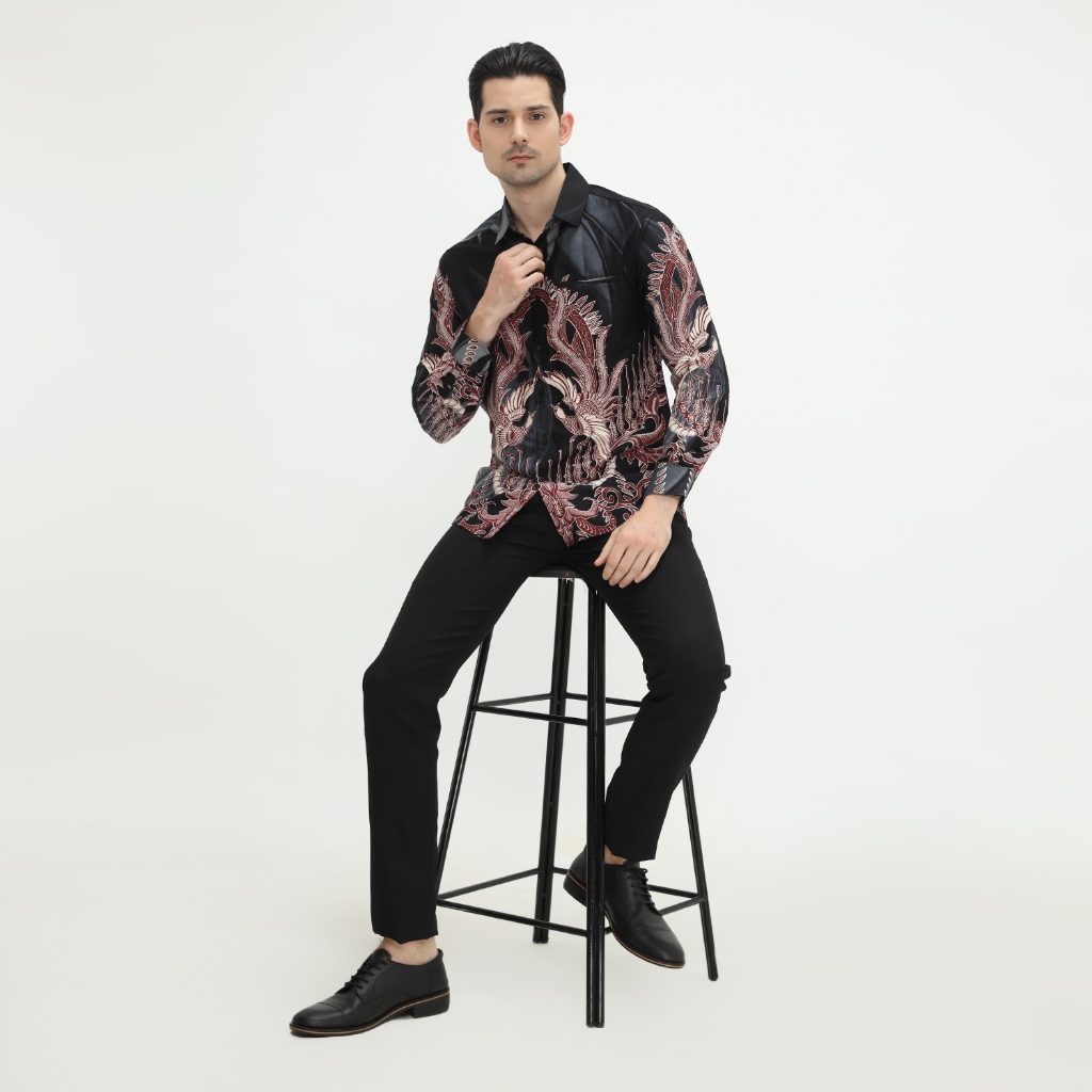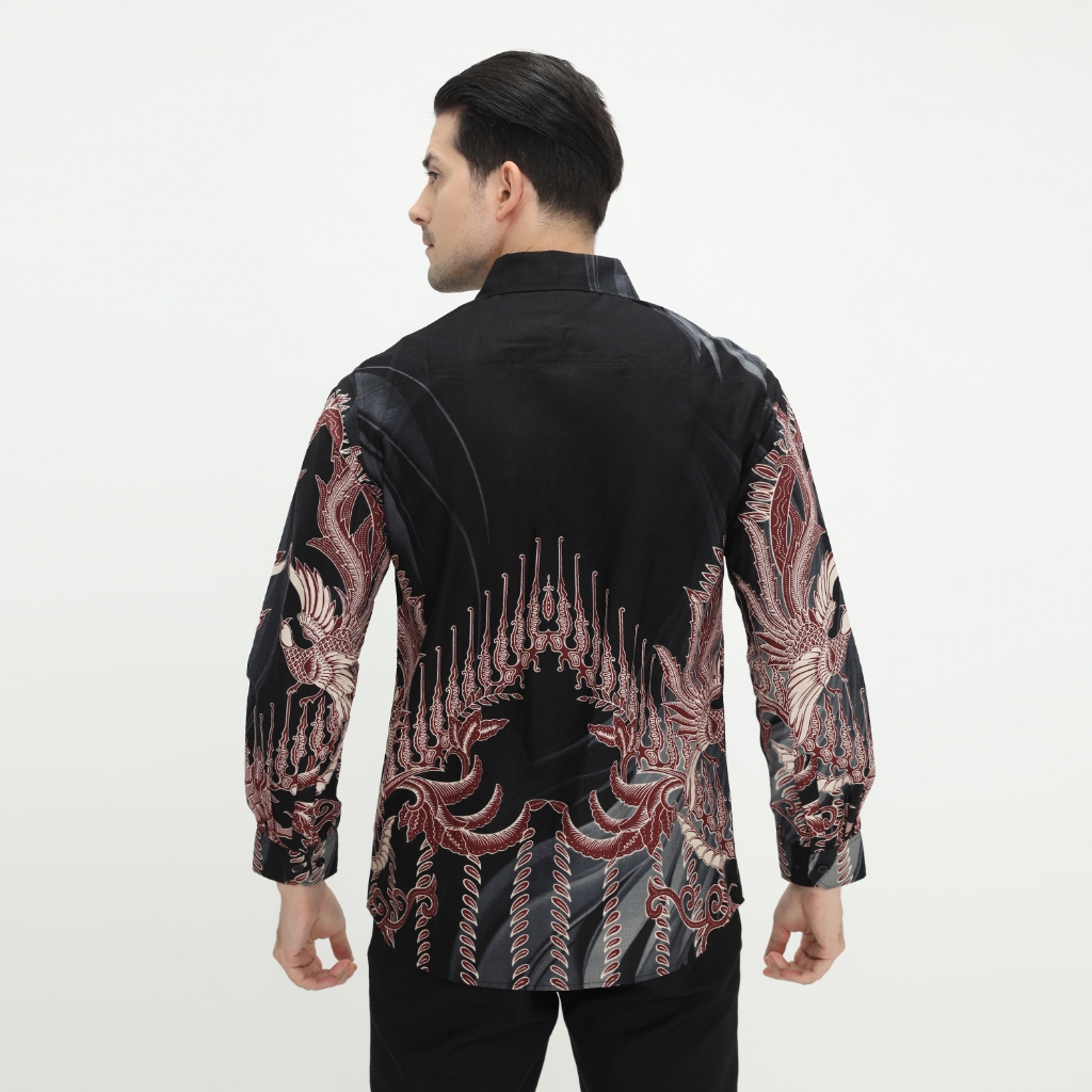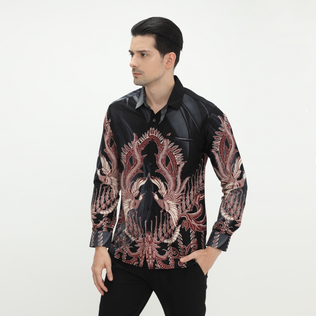 Kemeja Batik Pria Atasan Batik Modern Lengan Panjang Warna Hitam OLR226