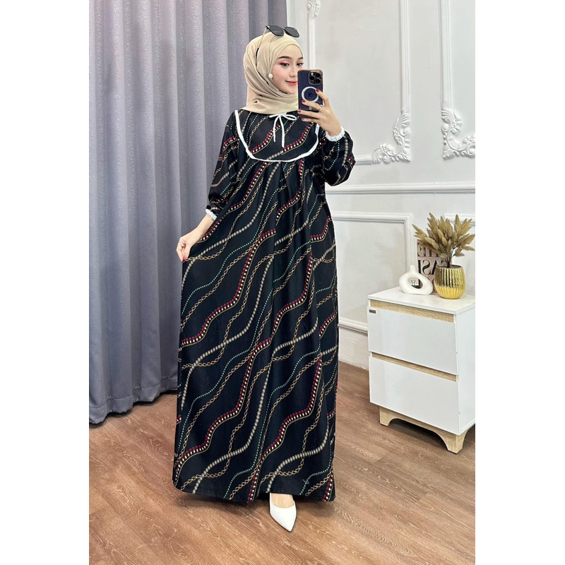 GAMIS BUSUI MOTIF DRESS AKSEN LIST TERBARU GAMIS RAYON PREMIUM GREED A BUSUI