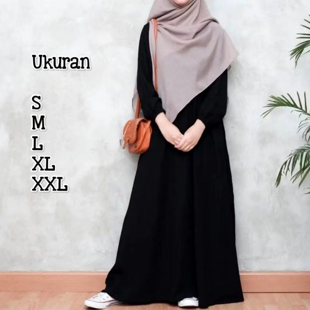 Gamis Abaya turkey basic Polos Dress Muslim Busui Simple Elegan tangan karet