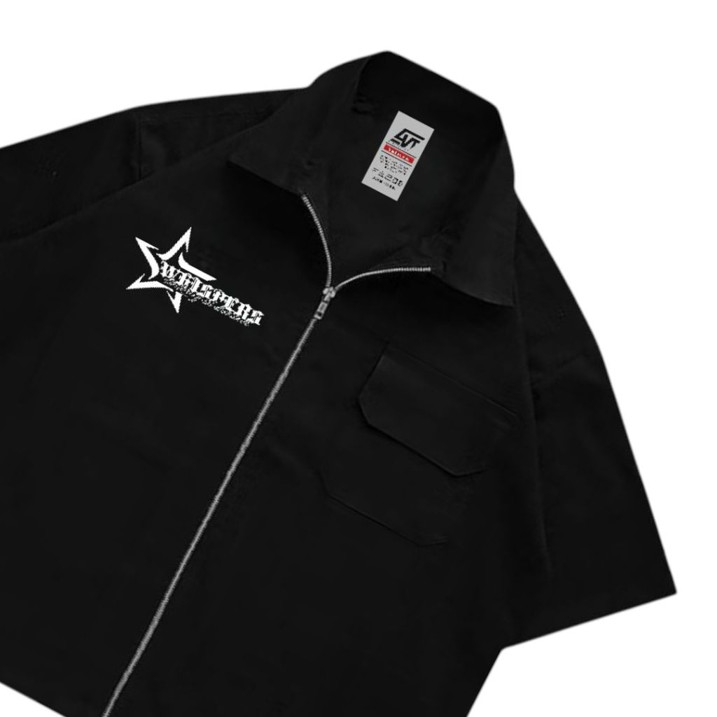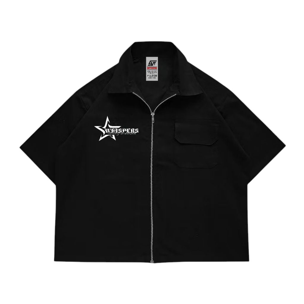 Giovent Work Shirt Zipper Boxy Kemeja Kerja Casual Black "whispers"