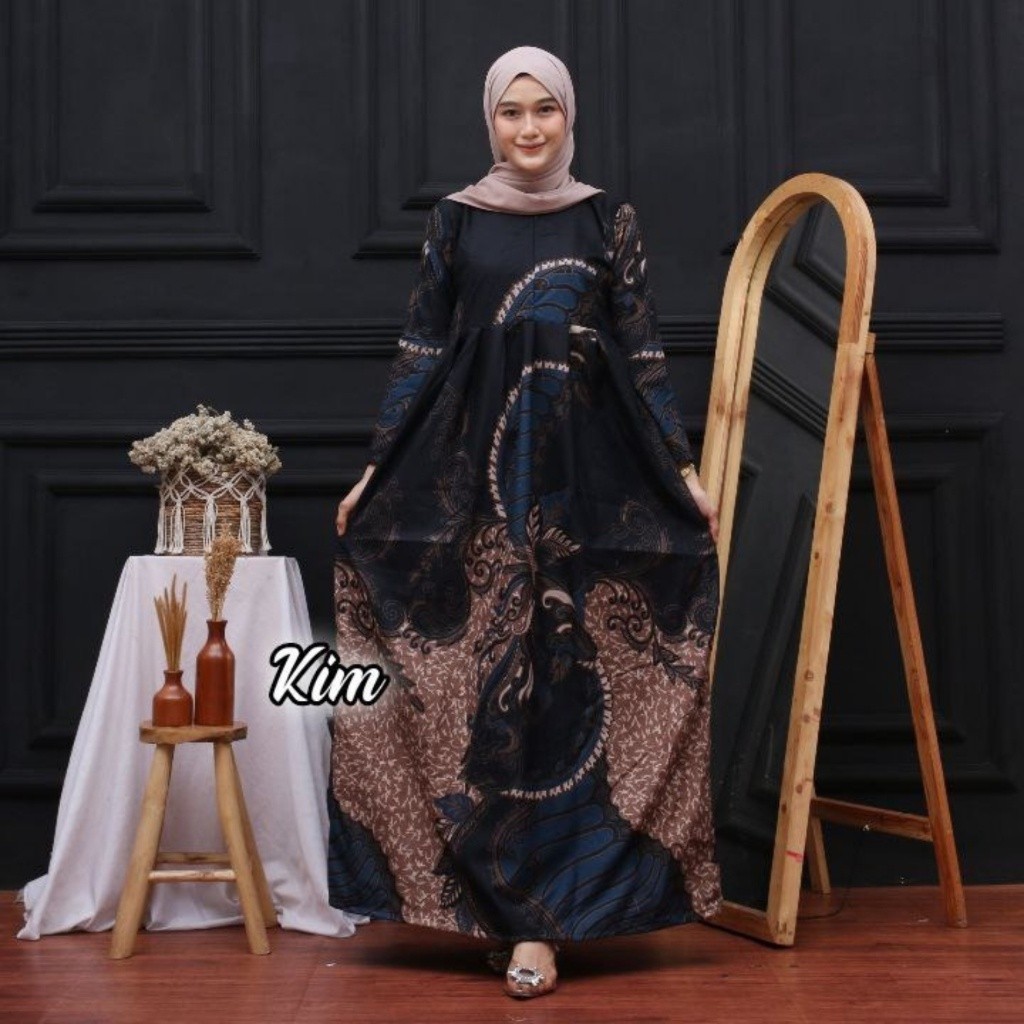 Gamis Batik AZMI Tali Samping Resleting Depan Busui Friendly
