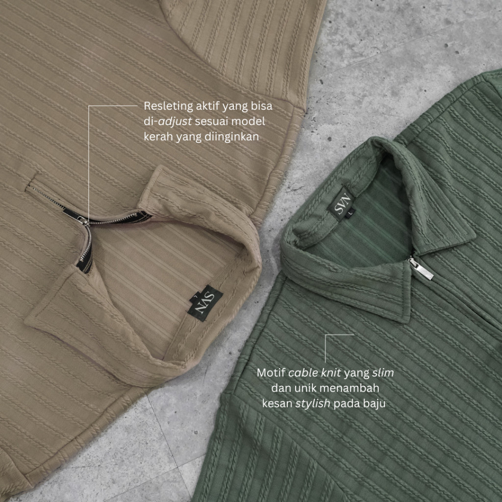 SAGI Men - Polo Shirt Pria Cali Knit | Kaos Polo Shirt | Kaos Pria Berkerah | Cali Upper Zip Polo Shirt