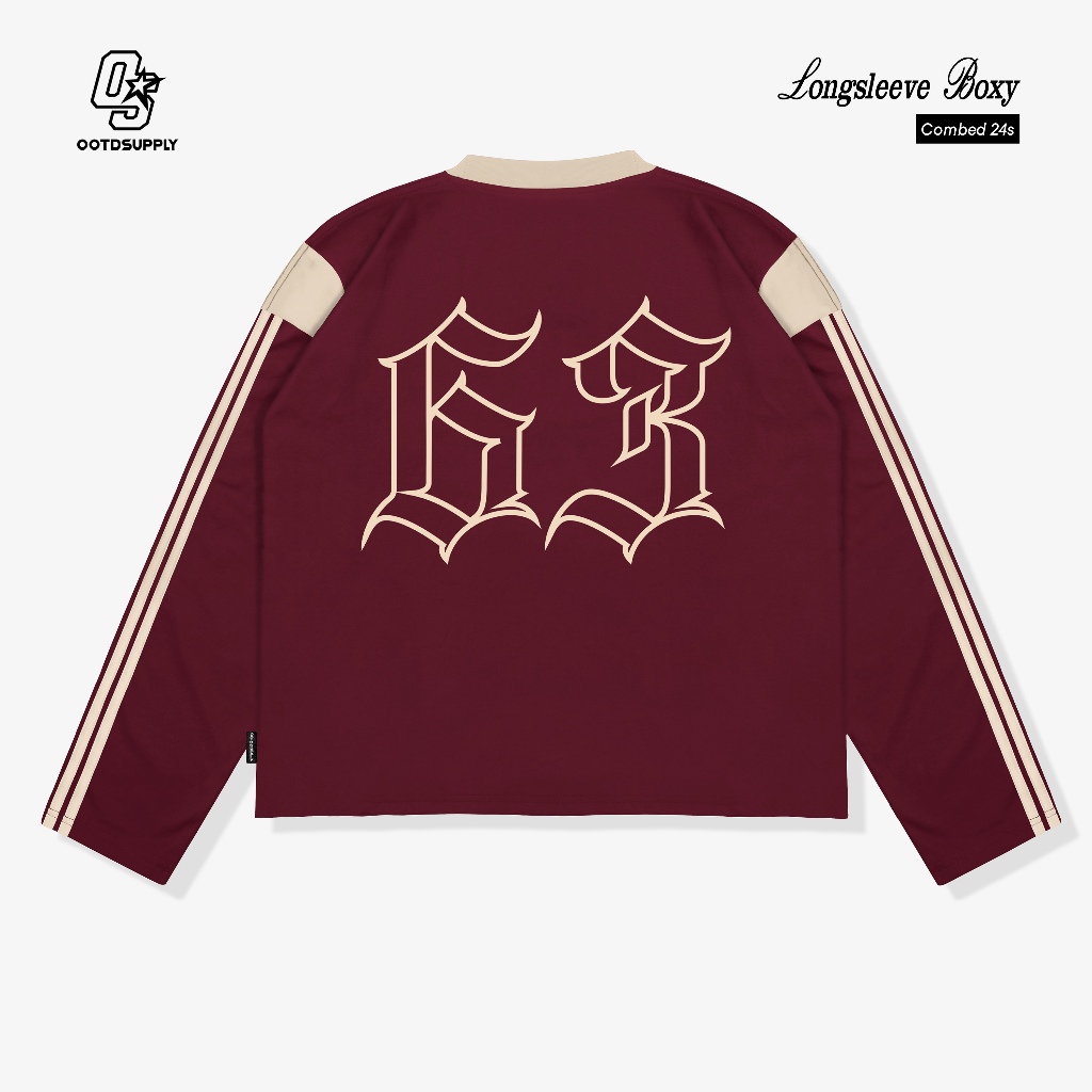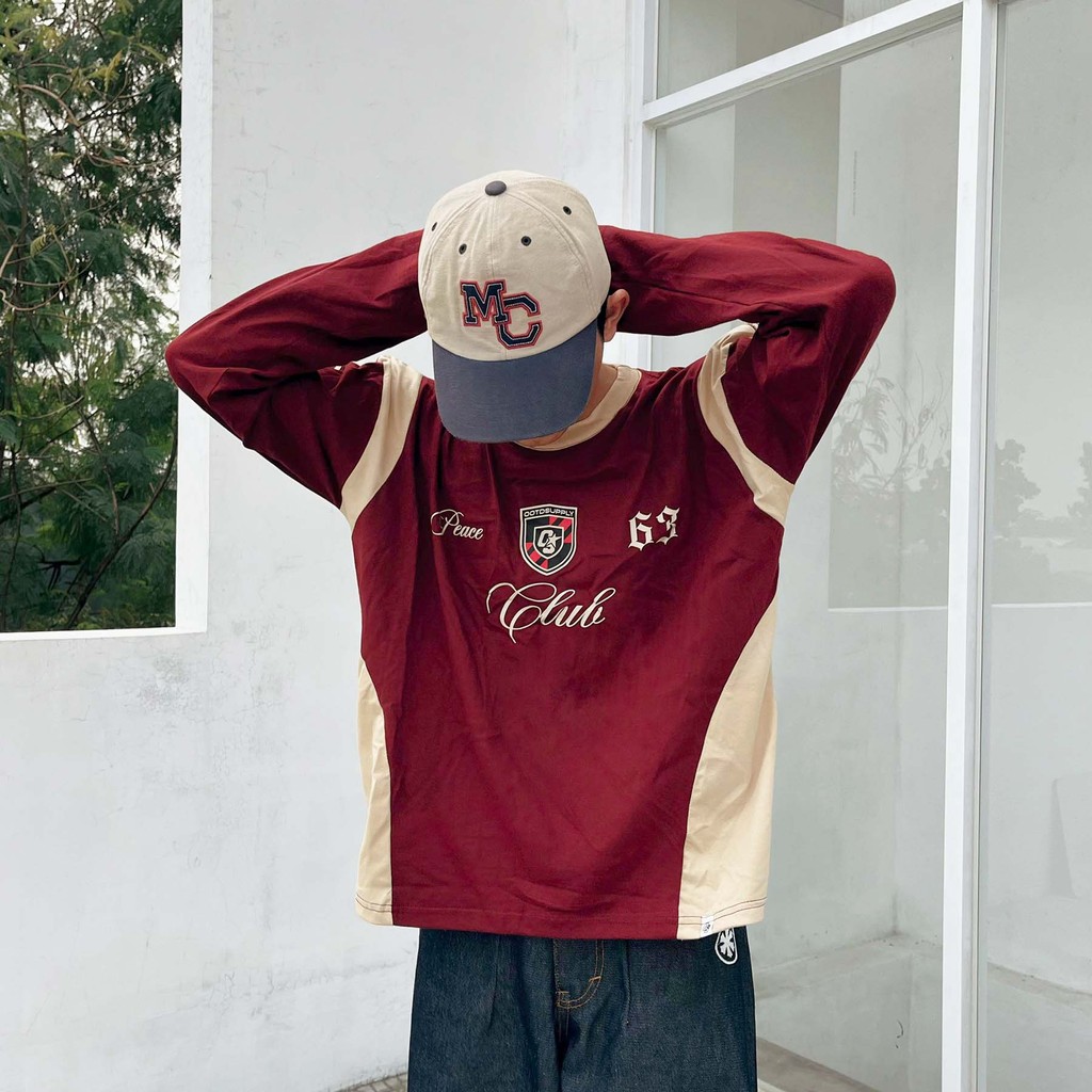 OOTDSUPPLY Longsleeve Boxy Slava Peace Club Maroon l Atasan Boxy Panjang Unisex | Kaos Lengan Panjang Pria dan Wanita |