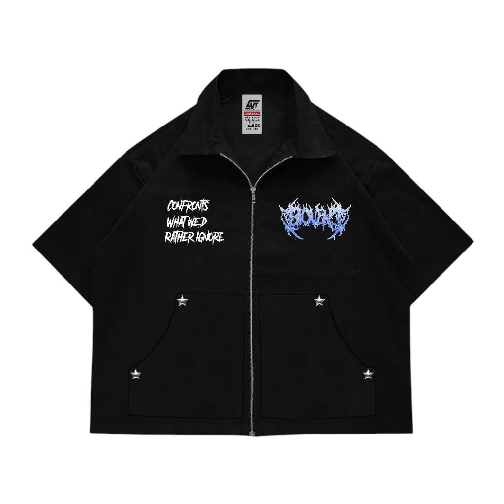 Giovent Work Shirt Zipper Boxy Kemeja Kerja Casual Black "starsoulless"