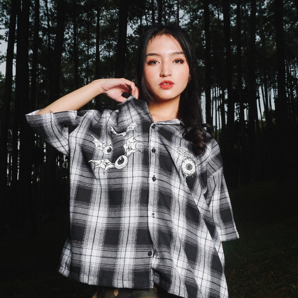 Convergent - Tough Kemeja Flannel Boxy Pria Wanita Lengan Pendek Workshirt