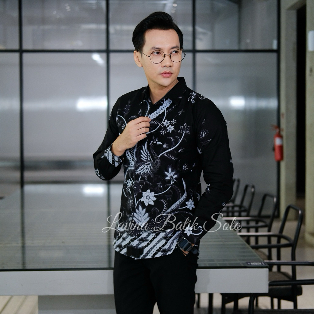 Motif Merak Merik Lavina Batik Solo, Baju hem kemeja batik lapis furing yang Nyaman dengan bahan asli katun