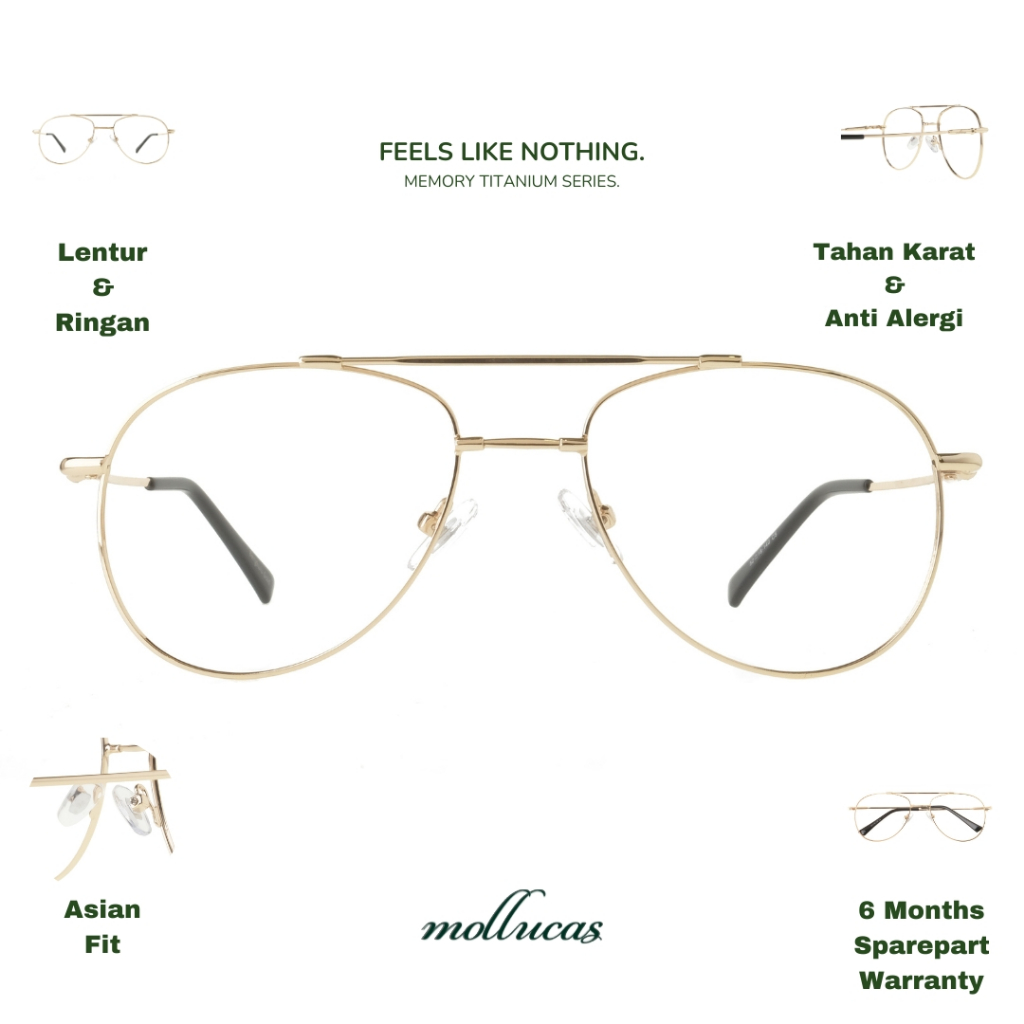 Mollucas - Bengkulu kuning mengkilap - Memory Titanium Series - Gratis Lensa Minus/Plus/Silinder Anti Radiasi - Kacamata Pria/Wanita
