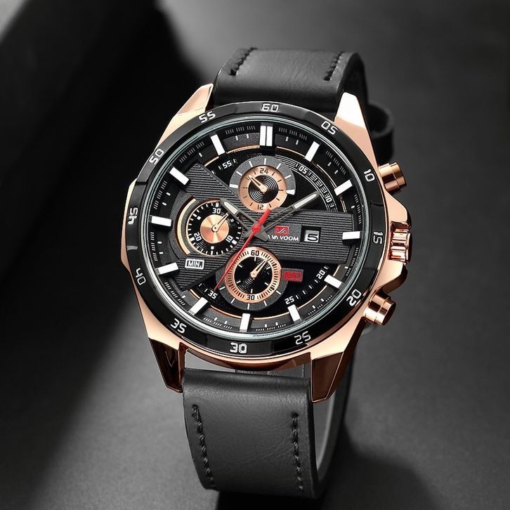 VAVA VOOM Jam Tangan Pria Kronograf TANGAN COWOK Quartz Analog Kulit Mursh Gift COWO 216