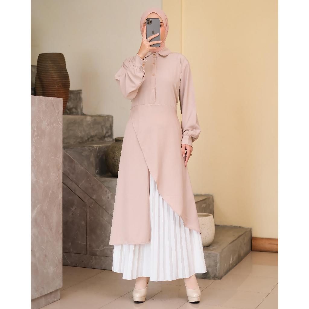 Miqdad Fashion - Athalia Long Tunik - Kemeja Wanita Lengan Panjang - Baju Atasan Wanita Muslim Kekinian Terbaru