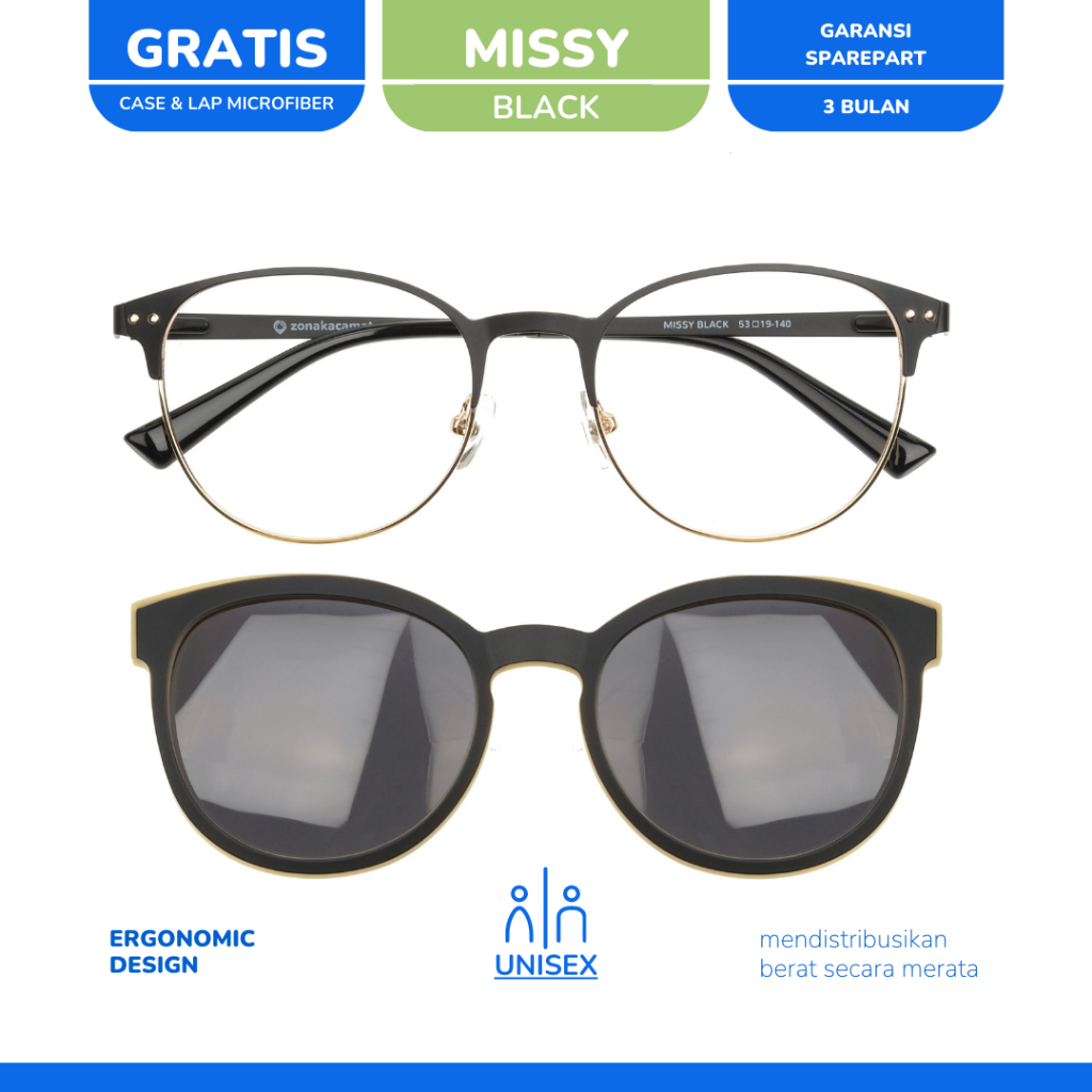 zonakacamata - Clip On Missy Black - Frame Kacamata - Pria/Wanita - Minus/Silinder/Plus