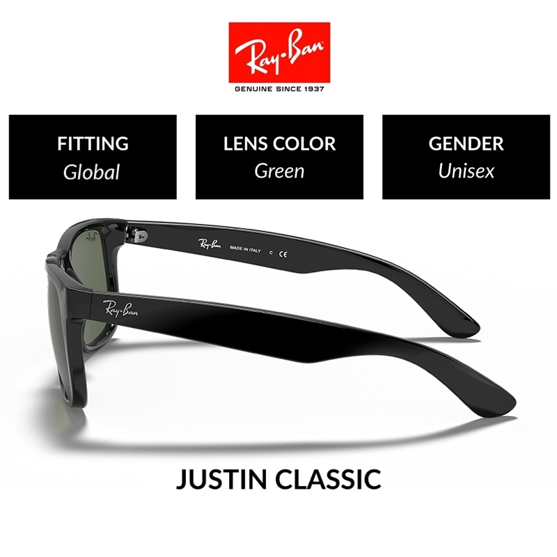 NEW 100 PERSEN Original Ray-Ban Kacamata Hitam Justin RB4165 Sunglasses Black pria wanita Ori Grey Light