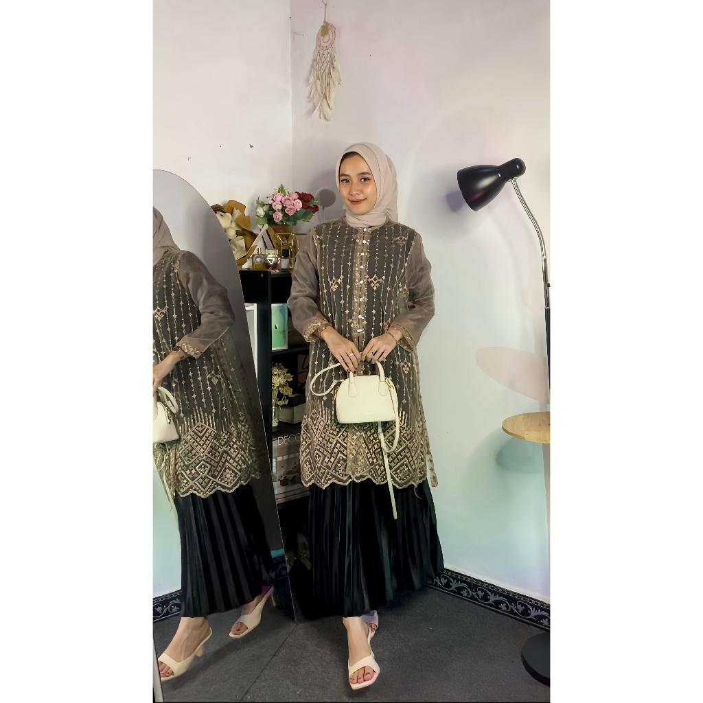 Hadju Tunik Brukat Bordir Sapto / Tunik Brokat Tali Kancing Mutiara Payet Diamond / Baju Kondangan, Wisuda, Seragaman, B