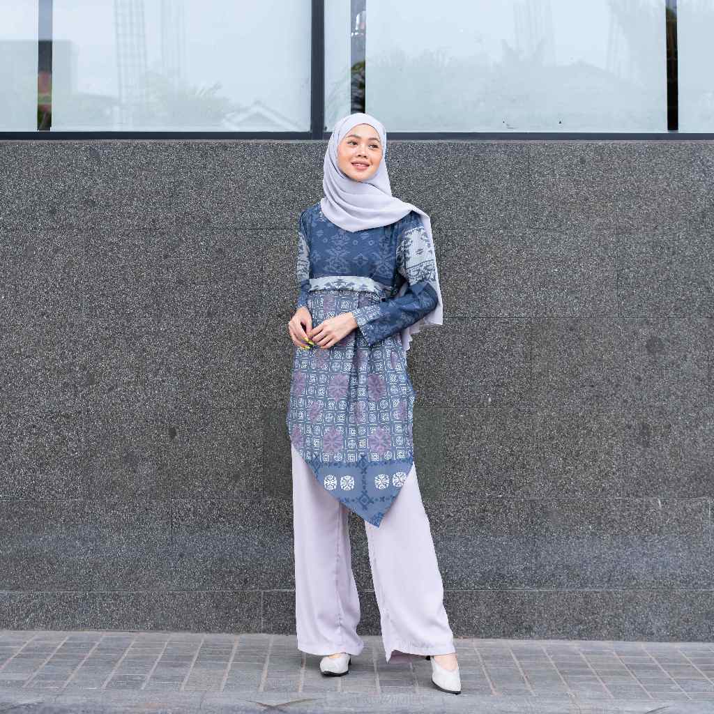 The Bloom House - Zelmira Tunik Silk Midi Dress Wanita Motif Batik Etnik B710