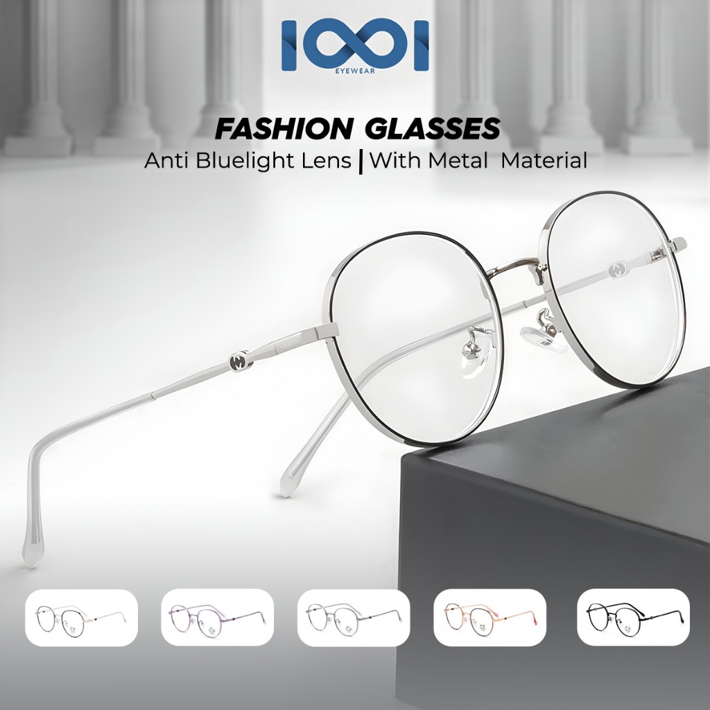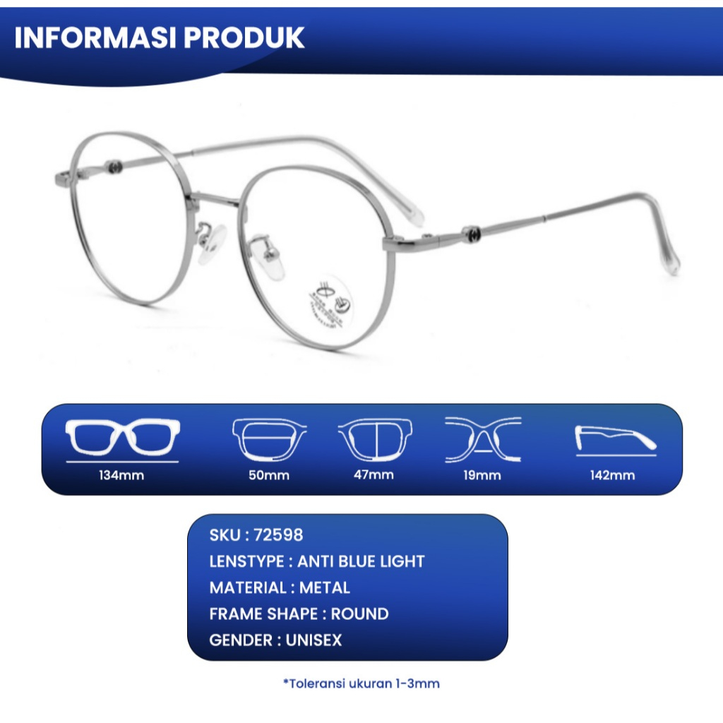Kacamata Round Metal Anti Radiasi Blueray Photocromic Pria Wanita 72598