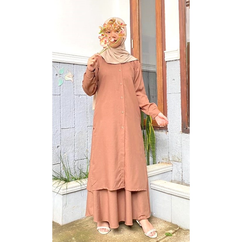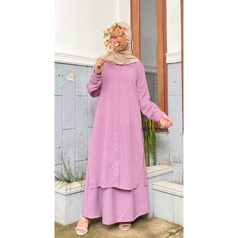 One Set + Rok Tunik HANUM Busui Wanita Muslim Jumbo Bahan Itty Creepe Terbaru / Size M L XL XXL
