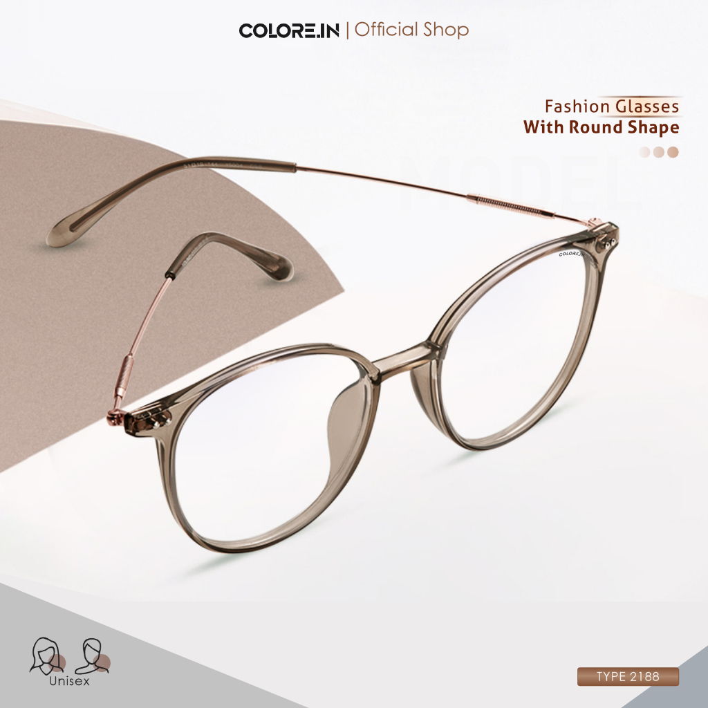 Colore.in Kacamata Photocromic Minus Anti Blueray Radiasi Wanita Pria 2 in 1 Bluecromic Anti Silau Bulat Metal+TR-90 Fra