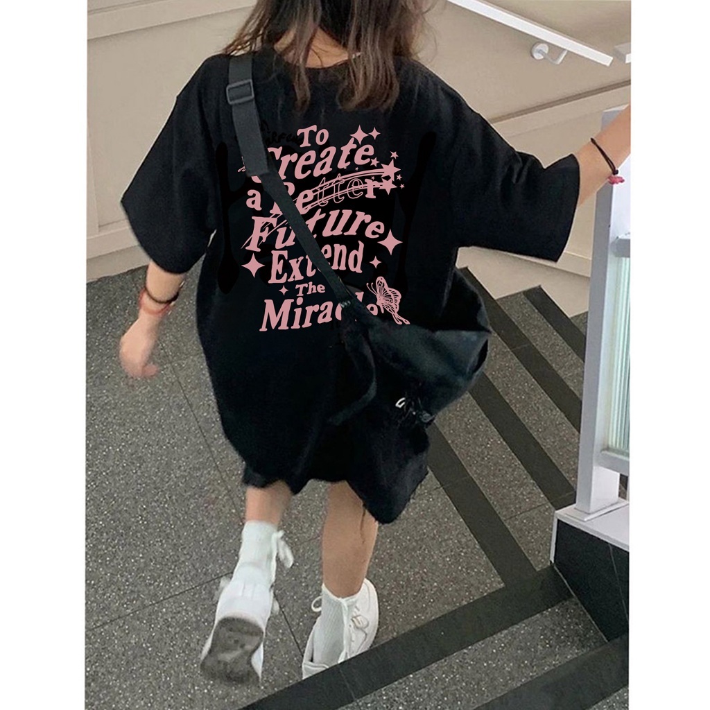 kaos unised black latter print korean baju atasan pria wanita atasan Future creat Tshirt vintage retro lengan p