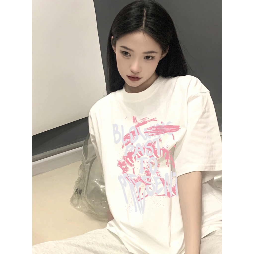 t-shirt Oversize Tshirt Pink Alphabet Graffiti baju big size kaos korea | Kaos baju Wanita pria/210