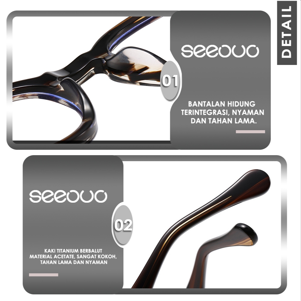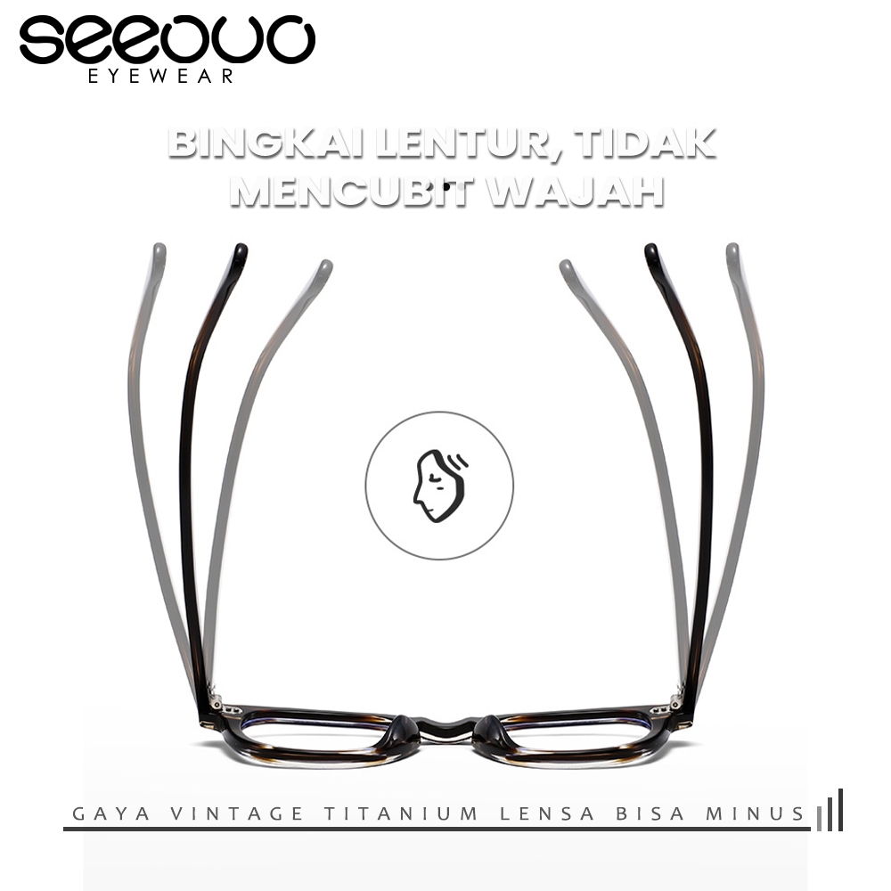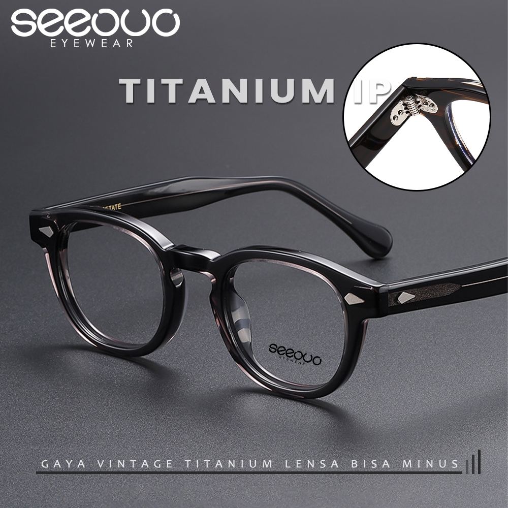 Seeouo Titanium IP Kacamata Acetate Model Kotak Oval Kokoh Stylish Frame Fashion Vintage Bisa Minus Antiradiasi Photocro