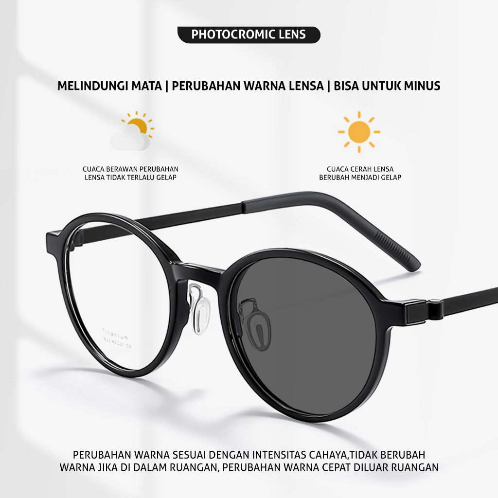 La Chapella Kacamata Titanium Memory Anti Radiasi Blueray Photocromic Bluecromic Round Unisex Luxury High Quality Myopia