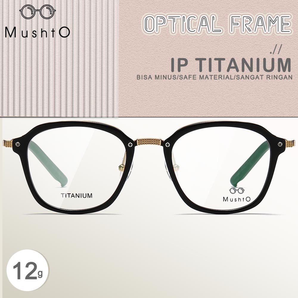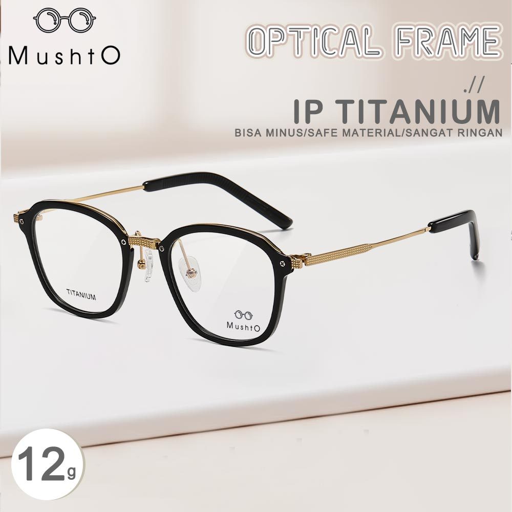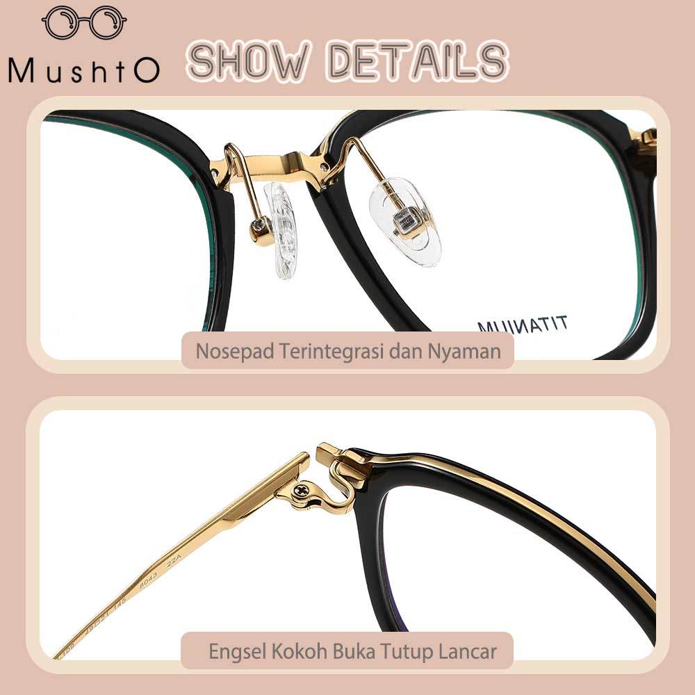 Mushto Kacamata Bentuk Kotak Stylish Titanium High Quality Plano Lens Bisa Minus Photocromic Fashion Wanita 109