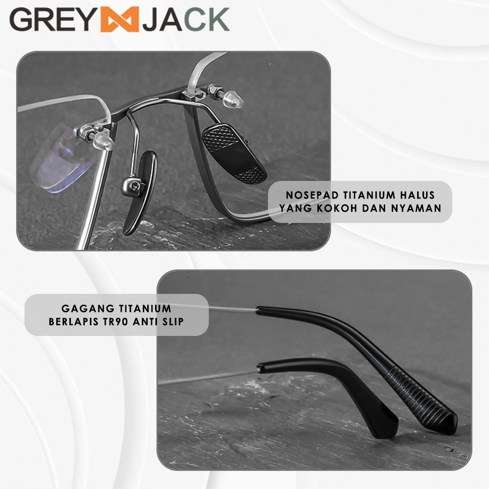 Grey Jack Frame Kacamata Titanium Kokoh Model Half Rim Klasik Bisnis Style Pria Wanita Bisa Minus Antiradiasi Blueray Ph