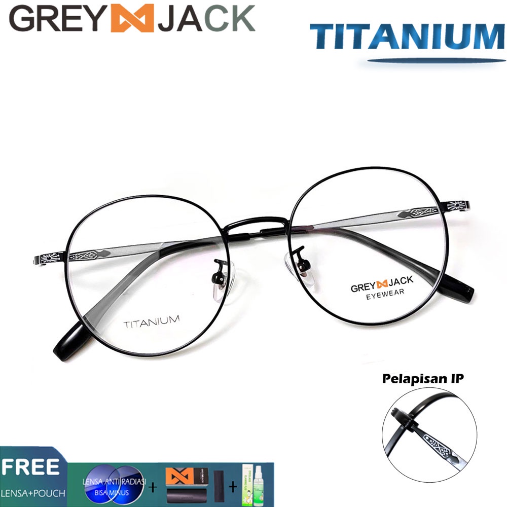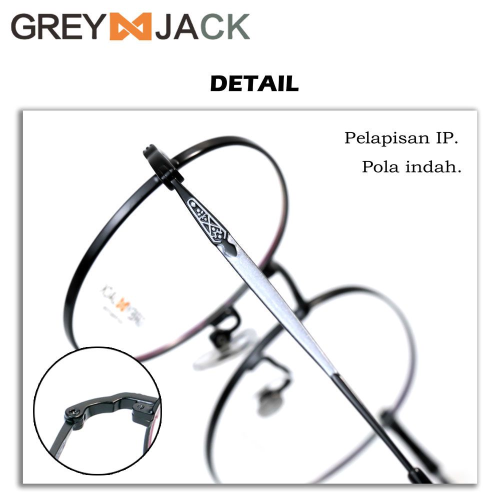Grey Jack Frame Kacamata Titanium Bentuk Bulat Simple Bisa Minus Antiradiasi/Blueray/Photocromic/Bluecromic 9085