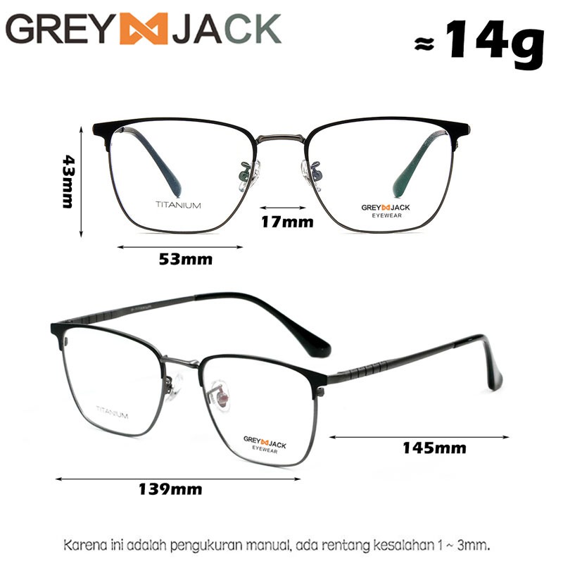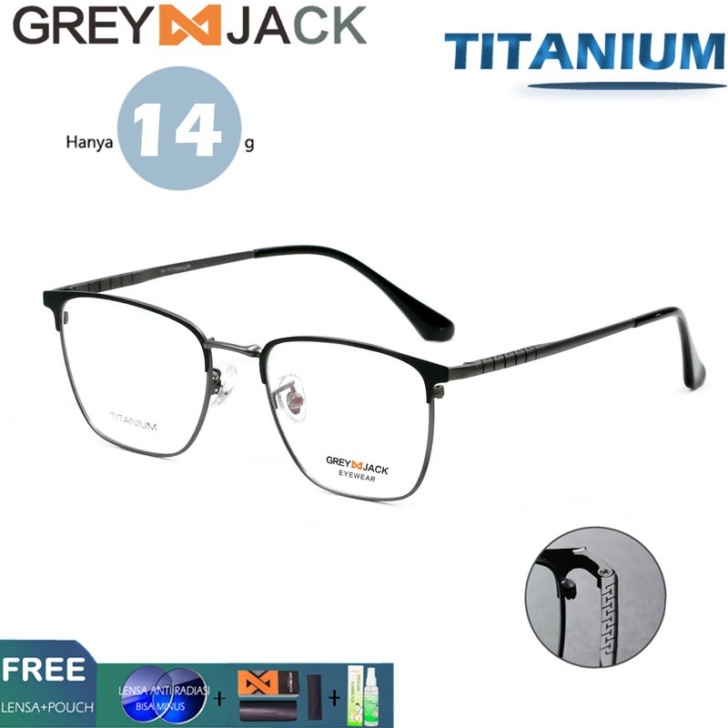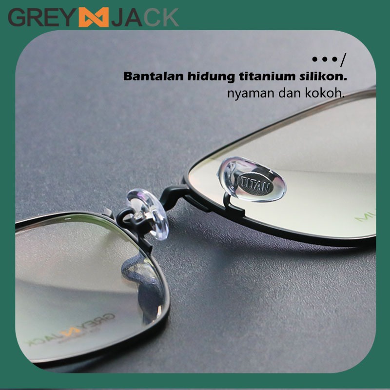 Grey Jack Frame Kacamata Kotak Simple Titanium Ringan dan Berkelas Bisa Minus Antiradiasi/Blueray/Photocromic/Bluecromic
