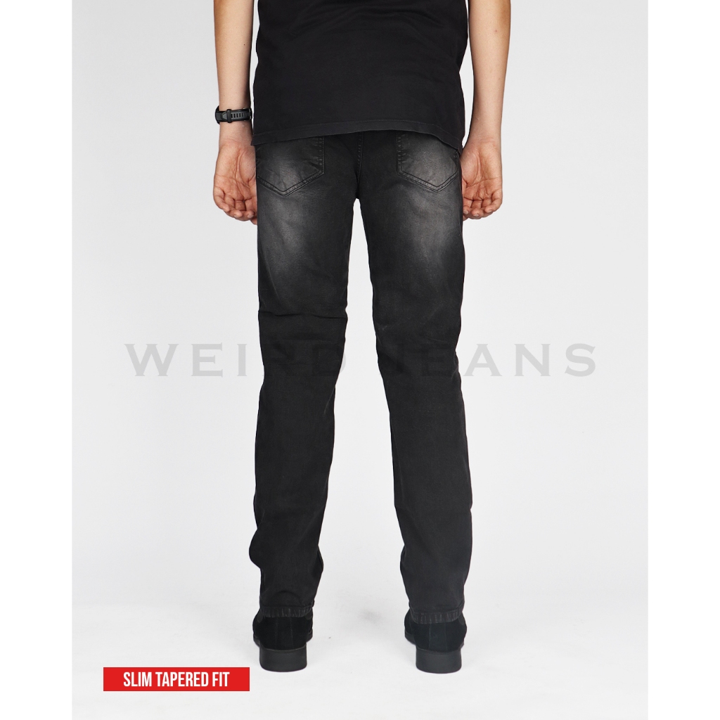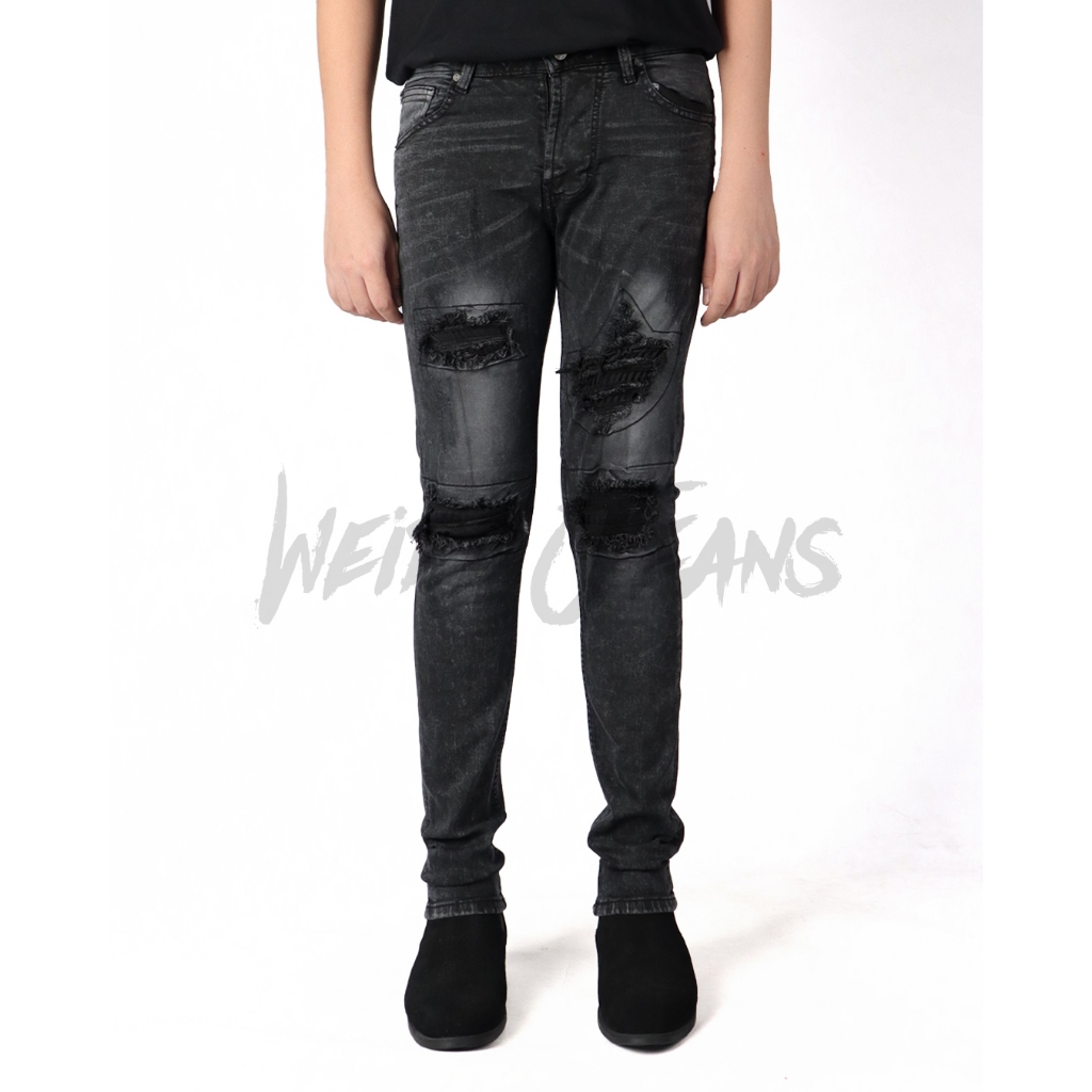 Weird Jeans - Austin Black - Celana Jeans Panjang Pria Slimfit Ripped Sobek Tambal
