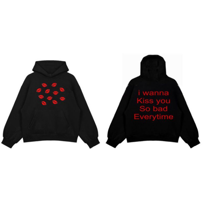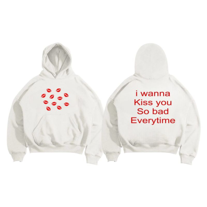 Hoodie Boxy White I Wanna Kiss You Oversize Pria Wanita