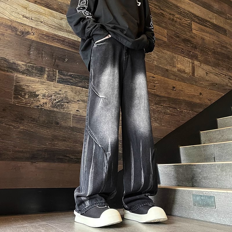 X-Gent celana gombrong jeans abu hitam pria/wanita unisex kulot jumbo baggy denim selvedge loose pants