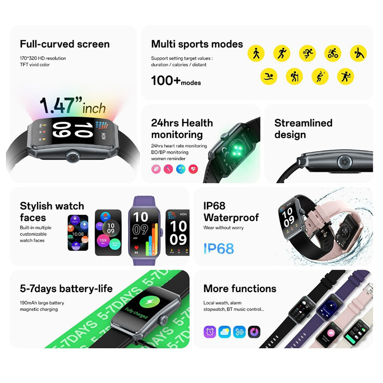 Aibro Watchband R11 Layar 1.47 Inch Full Curved IP68 Waterproof 100+ Sport Mode Health Monitoring Garansi Resmi 12 Bulan