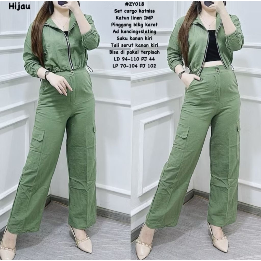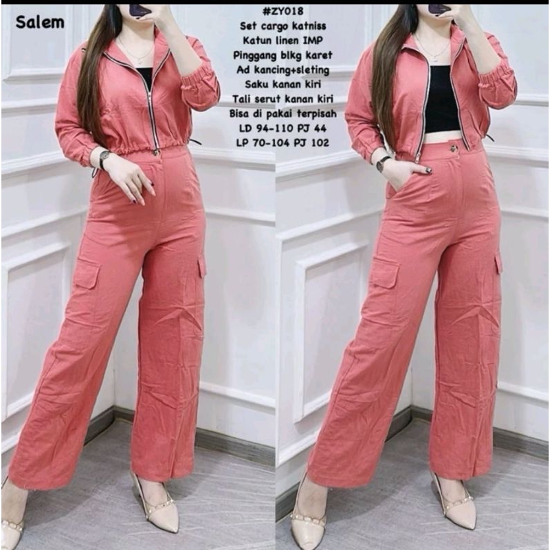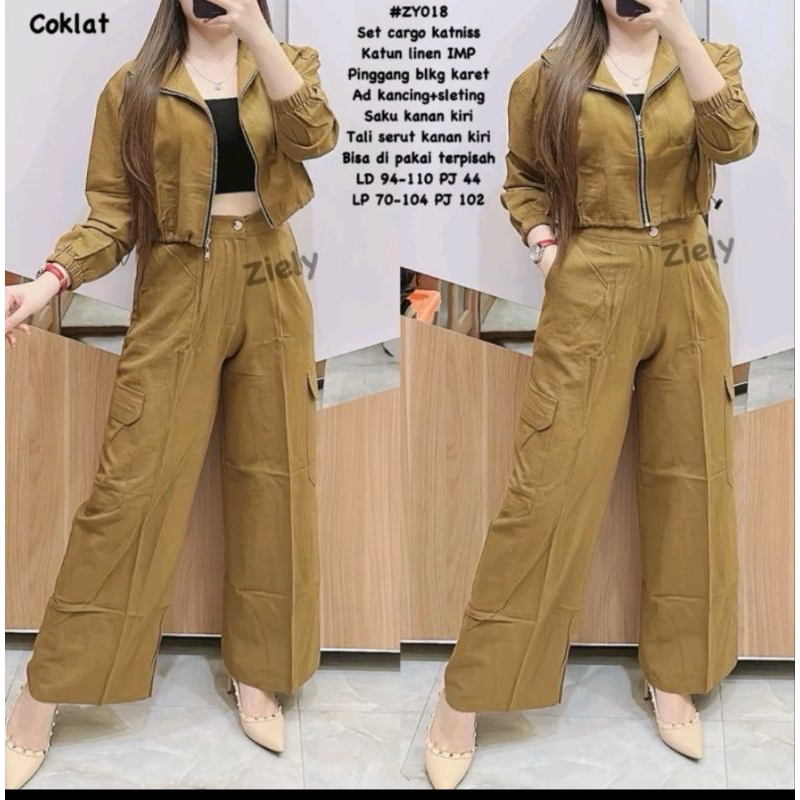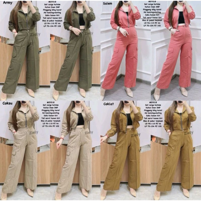 One Set Cargo Zely | Linen Katun | Stelan Wanita || XStore.id