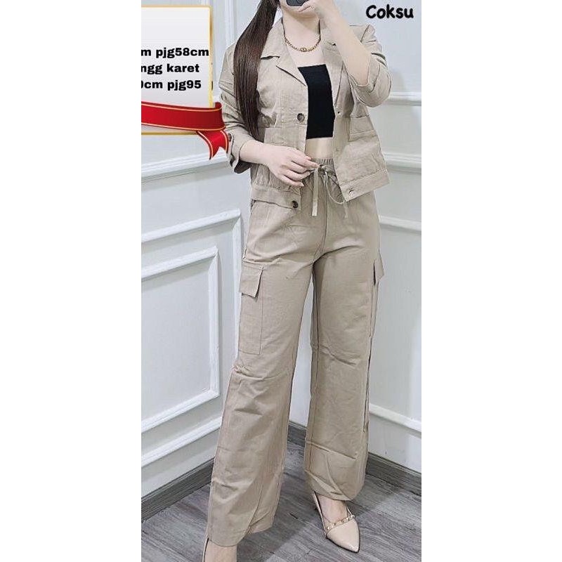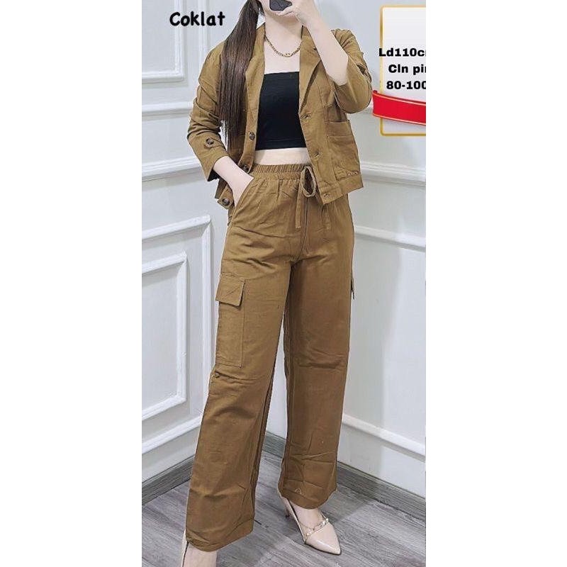 Carla Set Wanita Matt Linen Rami Fashion Setelan Atasan Dan Celana Wanita OOTD Simple Polosan Terbaru AC