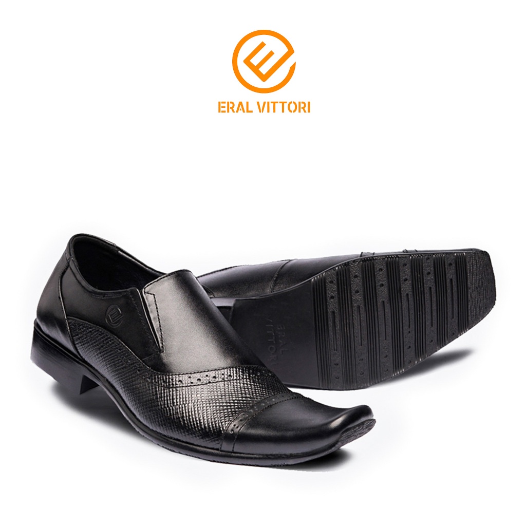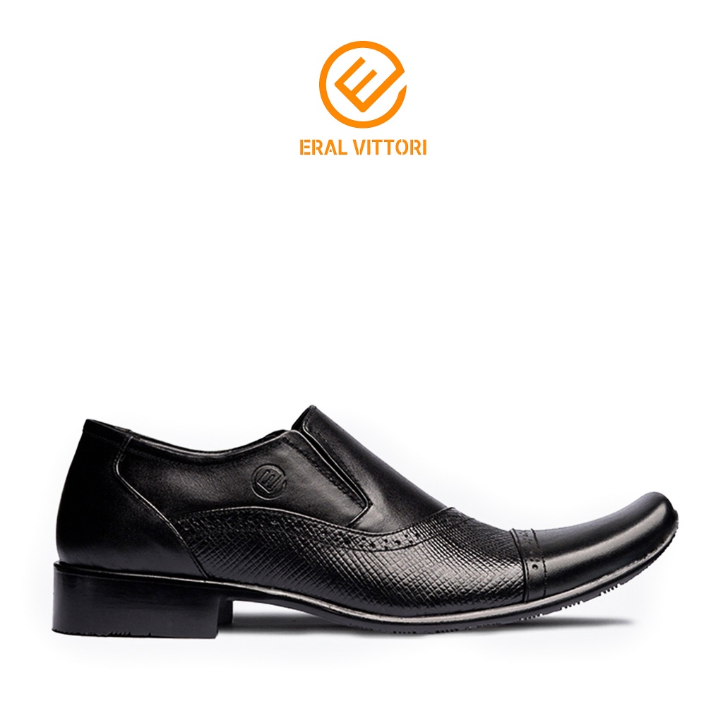 Eral Vittori - Erstep 7095 Sepatu Pantofel Kulit Pria Kantor Formal Casual Slip On Hitam