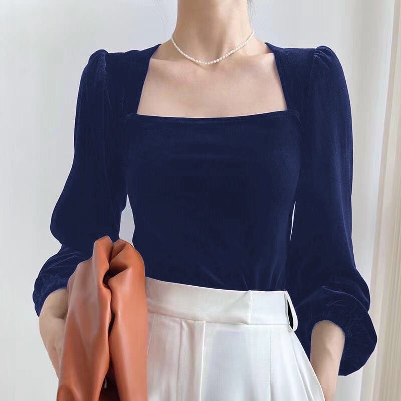Elegant Square Neck Long Puff Sleeve Velvet Top Blouse 1150 (S/M/L/XL)