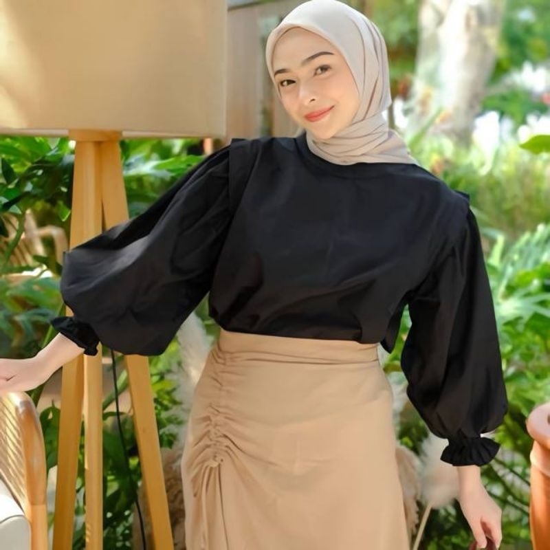 WOMENS CLOTHING SHOP | Moni Blouse Katun Linen - Blouse Puffy Lengan Balon - Atasan Wanita Korean Style