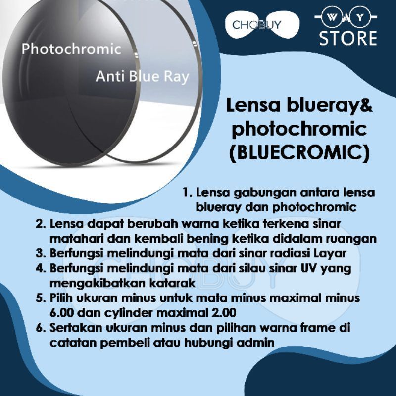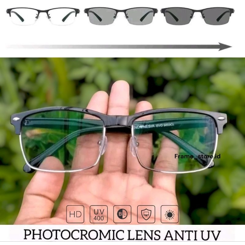 Kacamata Photocromic Lensa Anti Radiasi Blueray Minus Plus Frame EVO Unisex