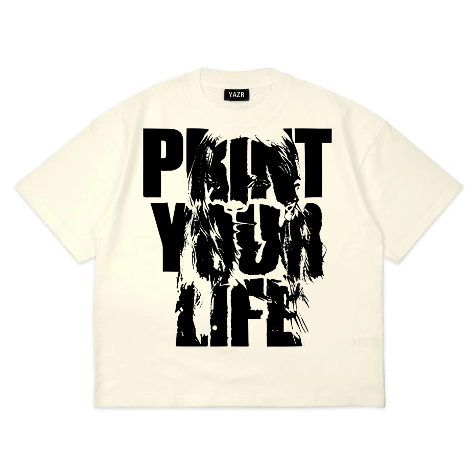 YAZR Kaos Boxy Oversized PRINT YOUR LIFE T-Shirt hitam Kaos Distro Unisex - Cotton Combed 24s