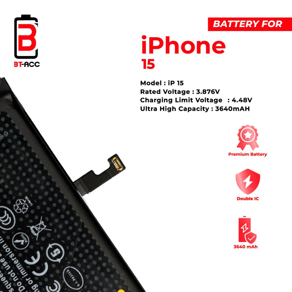 BT-ACC Battery Baterai Batre Ultra High Capacity For Iphone 15 / A3018 With 3640mAh