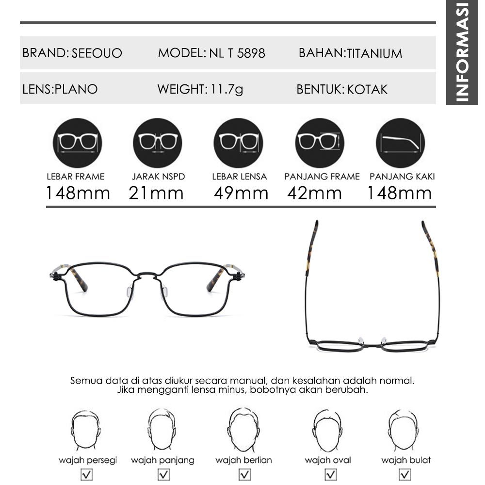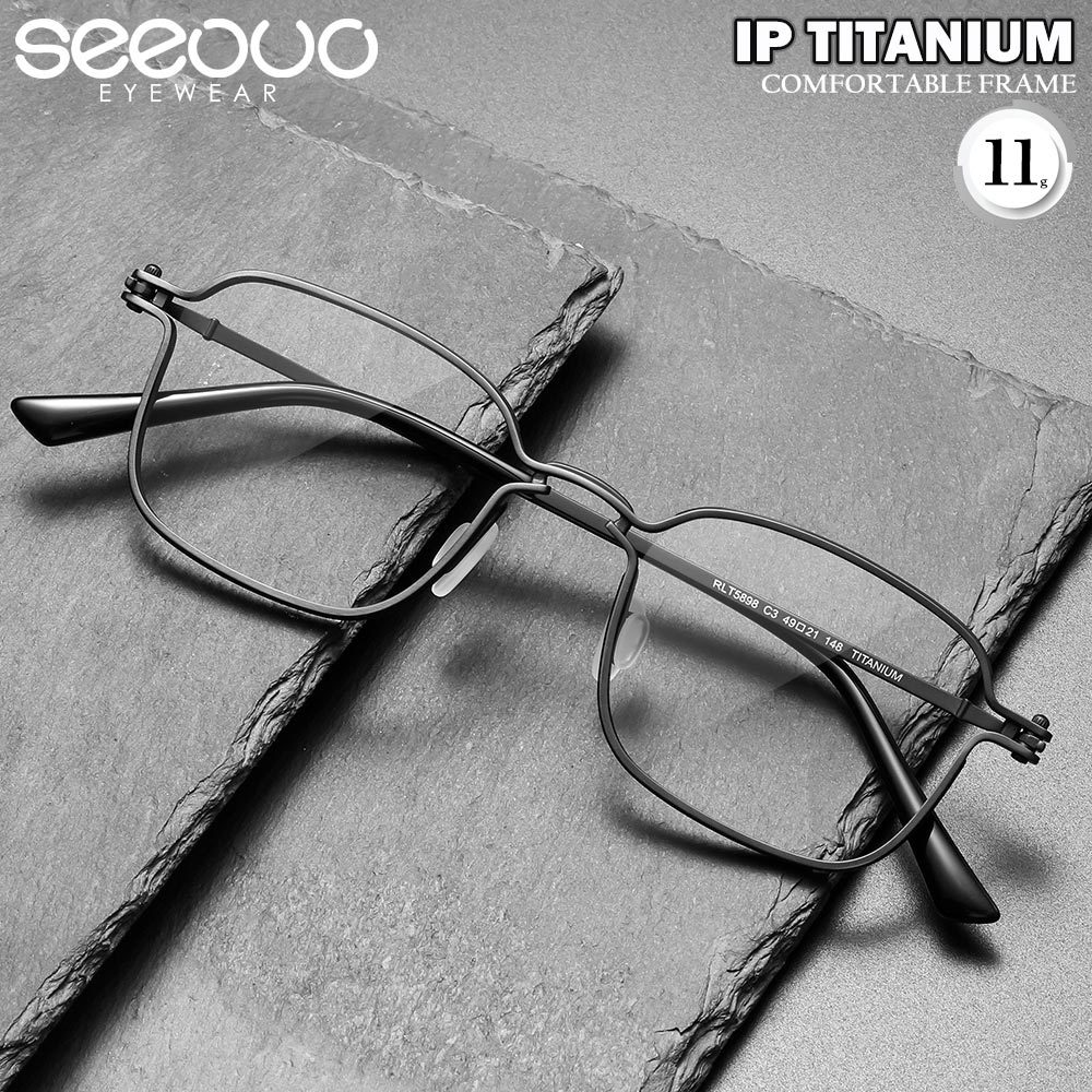 Seeouo Kacamata Plano Lens Bisa Minus Antiradiasi Blueray Photocromic Model Kotak Titanium High Quality Fashion Unisex 5