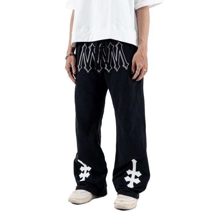 DENIMITUP H zigzag sweat pants - Jet black - Celana panjang pria